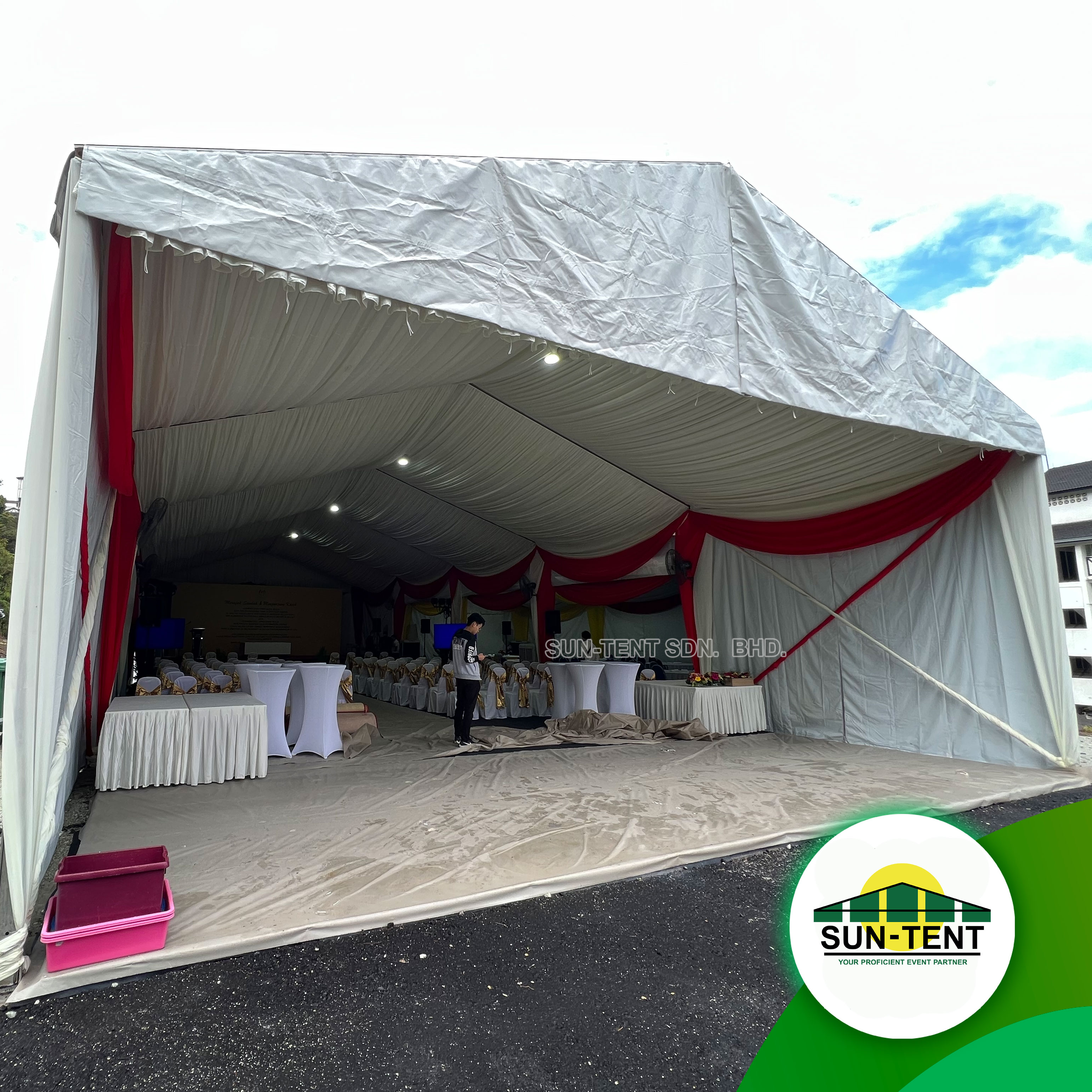 When it comes to tents or staging products Sun Tent Sdn. Bhd. is the name to trust. We always strive to offer our customers superior products, affordable prices and a high level of service. We are confident in providing our clients with the best solution from small party to large event.